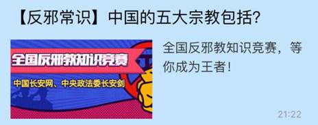 活动期间,中国长安网、长安剑还将每日不间断披露反邪教小常识,在公众号下方对话框输入“透题”: