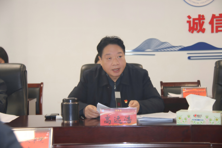 1月27日,学校召开2025年度基层党建述职评议考核会议。党委副书记、院长高远浩出席会议并讲话,学校党委领导班子成员、各党总支、各党支部负责同志参加会议,市委教育工委专职委员王彦浩同志到会指导并作点评讲话。会议由党委委员、副院长朱东煜主持。