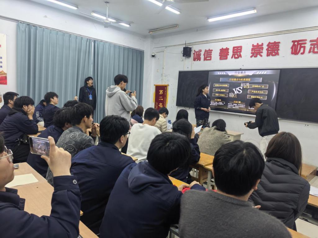 比赛现场,各参赛团队通过PPT展示、项目书汇报、现场答辩等环节,系统呈现了涵盖人工智能、农业种植、智能检测、无人机测绘等多个领域的研究成果。多个项目紧扣社会实际需求,兼具创新性与实用性,展现出大学生敏锐的市场洞察力与扎实的问题解决能力。