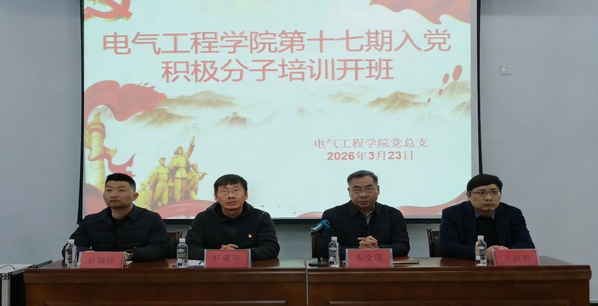 为深入学习贯彻习近平新时代中国特色社会主义思想,加强入党积极分子培养教育,严把党员发展 “入口关”,3月23日,电气(电力)工程学院在B111教室隆重举行第十七期入党积极分子培训班开班仪式。电气工程学院党总支负责人朱金伟、行政负责人王众毅,电力工程学院党总支负责人轩建举,行政负责人杜瑞涛,以及学生党支部全体教师、117名学员共同参与开班仪式。