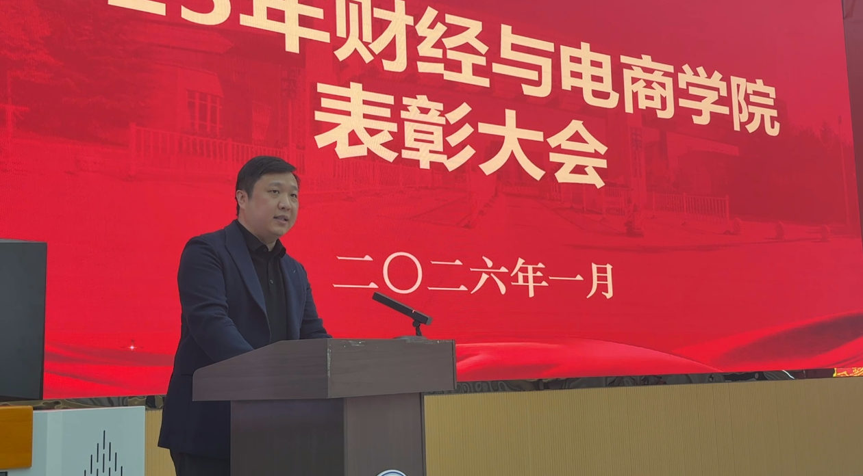 随后,学管会主席尹东旭作为学生代表上台发言,回顾学管会过往工作成效,感恩学校与师生支持,明确未来服务方向。最后,党总支负责人刘书源作总结讲话,寄语全体学子,希望全院学子将表彰大会的激励转化为前行动力,踔厉奋发、勇毅争先,在财经电商领域续写青春华章。