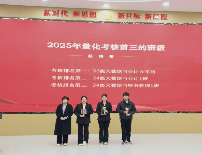 冬日暖阳映初心,榜样力量催奋进。2026年1月14日下午,许昌电气职业学院财经电商学院表彰大会在VR思政报告厅隆重召开,学院党总支负责人刘书源、行政负责人刘会彩、副书记吕艳、副院长赵峰、团总支书记孙妍哲以及全体辅导员老师、学生代表齐聚一堂,共同见证荣耀时刻,凝聚奋进力量。