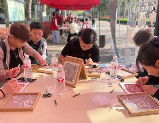 为进一步丰富校园文化生活,将美育教育与传统文化传承深度融合,4月1日下午,财经电商学院在宿舍楼CD连廊路西侧大道开展非遗宋锦珍珠画体验活动,活动吸引众多学子踊跃参与,大家在指尖的精细创作中领略非遗魅力,在沉浸式的手工体验中涵养匠心。
