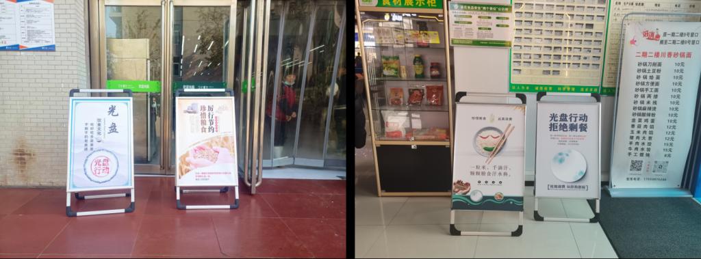 学院后勤服务中心在餐厅入口处、餐厅内显眼处等位置摆放“厉行节约,珍惜粮食”、“光盘行动,拒绝剩食”、“文明用餐”等宣传标语,引导师生知行合一、理性消费,主动做文明餐桌的维护者。
