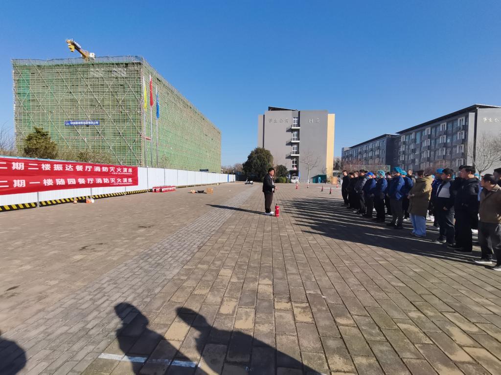 为进一步提升校园餐饮从业人员消防安全意识和应急处置能力,切实筑牢校园消防安全屏障,2026年1月9日,后勤服务中心联合保卫处,组织开展了面向二期餐厅员工及营业房工作人员的消防安全实战演练。此次演练旨在通过实际操作与模拟应对,全面强化重点场所人员的火灾防范与自救能力。
