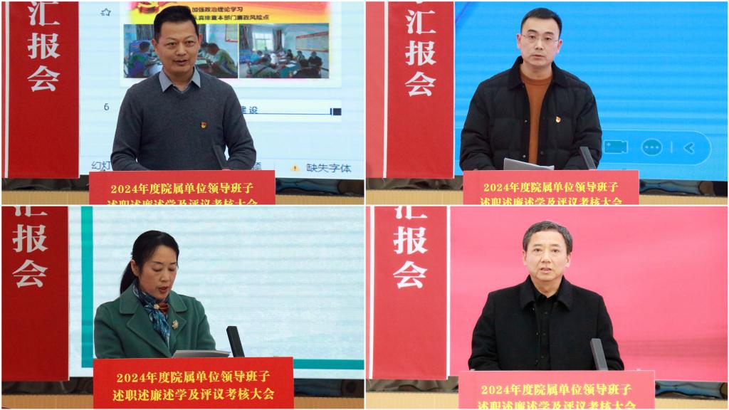 为进一步统一思想、明确方向、凝聚共识,全面回顾与总结过去一年各单位取得的显著成绩,确保新的一年以更饱满的热情、更加扎实的作风、更加高效的行动,推动各项工作再上新台阶,1月7日,学院召开2024年度院属单位领导班子述职述廉述学及评议考核大会。学院全体领导班子成员、各部门负责同志、部分科级以上干部、教师代表参与考核评议。院党委副书记张明慧主持会议。