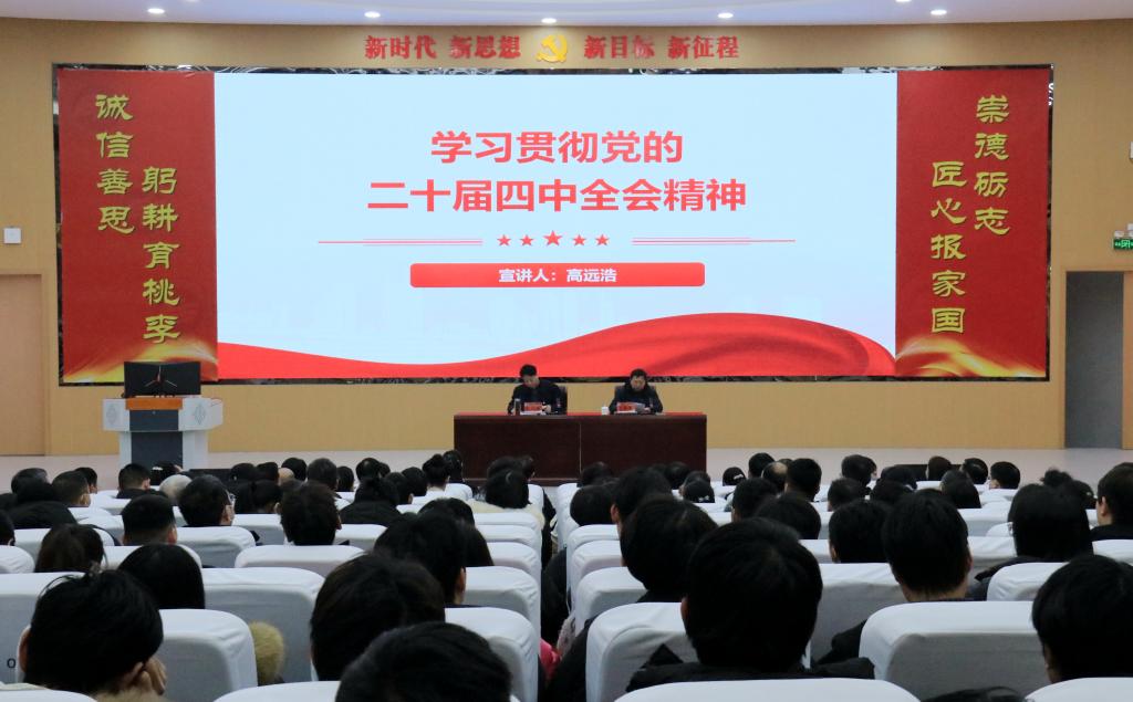为全面贯彻落实党的二十届四中全会精神,凝聚共识、擘画蓝图,推动学院事业高质量发展,12月18日下午,学院在思政报告厅召开学习贯彻党的二十届四中全会精神宣讲会暨党委理论学习中心组(扩大)学习会。市委宣讲团成员,许昌电气职业学院党委副书记、院长高远浩作宣讲报告。学院班子领导、院属各单位党政负责同志、各党支部书记及各二级学院师生代表参加会议。会议由院工会主席张贵军主持。