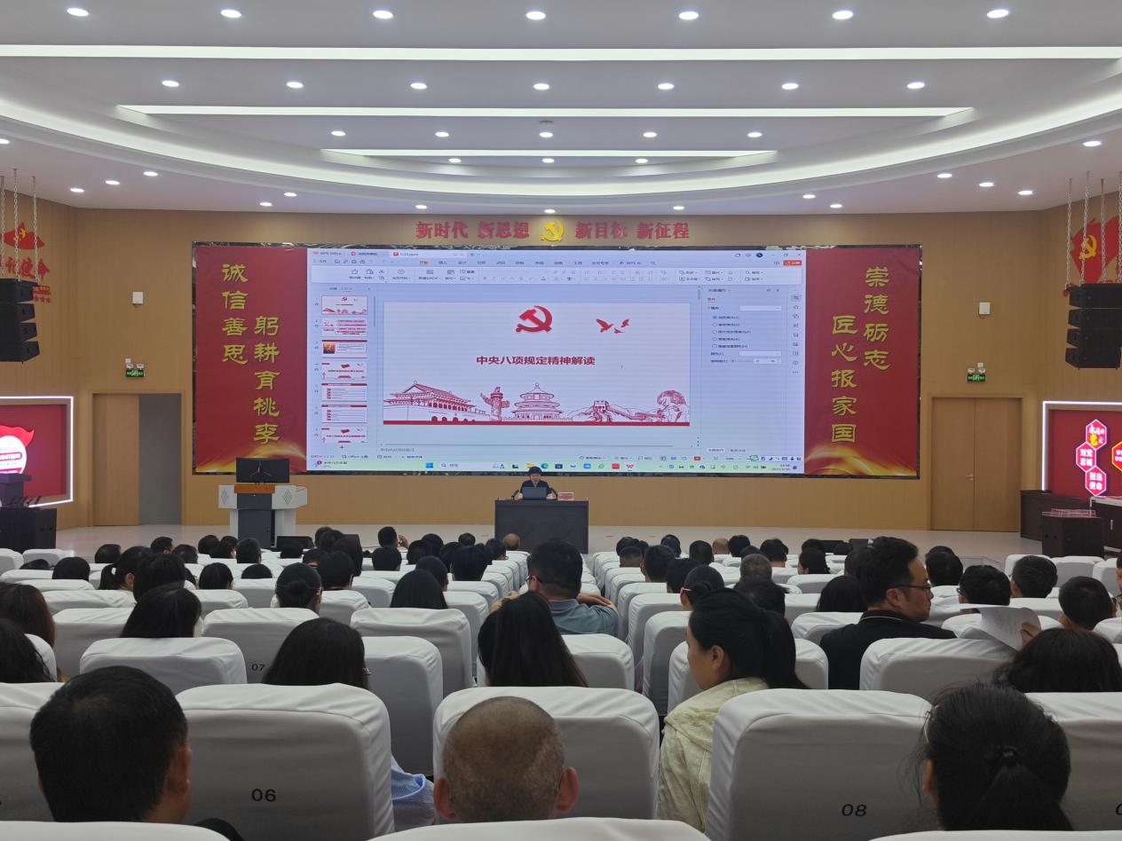 根据市委深入贯彻中央八项规定精神学习教育工作专班要求,报市委深入贯彻中央八项规定精神学习教育第一督导组同意,5月30日下午,院纪委在VR思政中心组织开展中央八项规定及其实施细则精神学习解读活动。党委委员、纪委书记张晓华紧密联系工作实际,对中央八项规定及其实施细则精神进行深入解读。学院党委班子成员、副科级(含副科)以上干部职工160人参加。