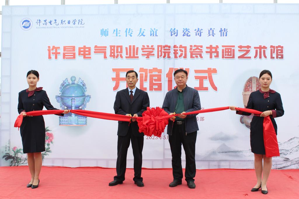 学院院长杨德岭、图书馆馆长张健君钧瓷书画艺术馆开馆剪彩
