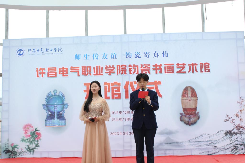 2023年5月30日上午,许昌电气职业学院钧瓷书画艺术馆开馆仪式在图书馆4楼圆弧大厅举行。学院院长杨德岭、副院长商淑敏、图书馆馆长张健君、宣传部副部长王德真等出席开馆仪式,原许昌市技工学校93陶瓷班的部分师生应邀出席,其中河南省工艺美术大师许海君、王志勇分别捐赠了价值30多万元的书画和钧瓷作品,并对部分作品作深入讲解。来自学院院属部门的部分老师和艺术系华洋高铁、商鲲学院的100多名学生参加了开馆仪式。