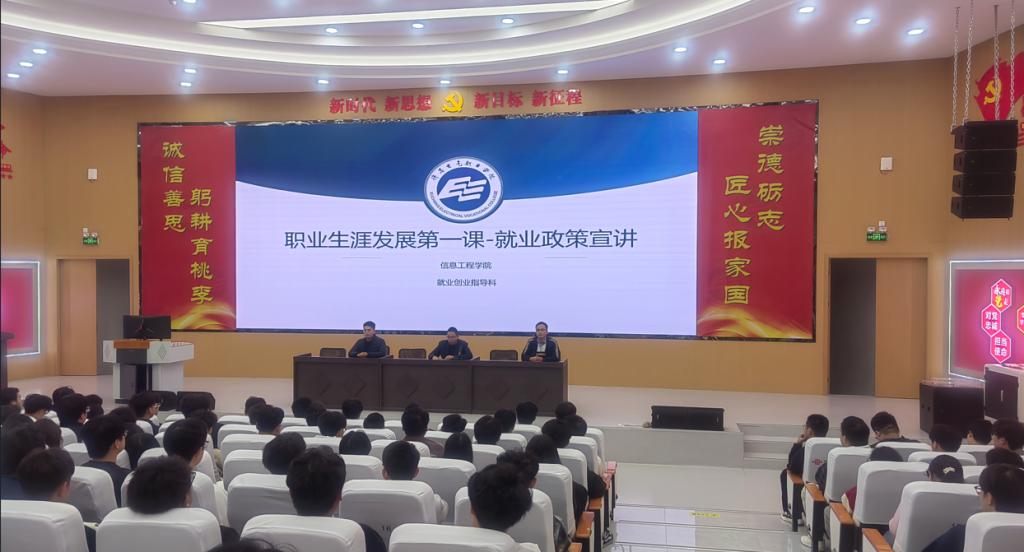 为深入贯彻落实省教育厅办公室关于组织开展 2025 级大学新生入学教育“职业生涯发展第一课”的通知要求,帮助新生尽快适应大学生活、明确专业方向与职业规划,近日,信息工程学院以“凝心聚力助就业、不负韶华早扬帆”为主题,精心组织开展了2025级新生“职业生涯发展第一课”系列活动,活动分为专业认知、学业规划、职业生涯教育、就业政策宣讲四个部分,为新生未来的学业与职业发展筑牢根基。