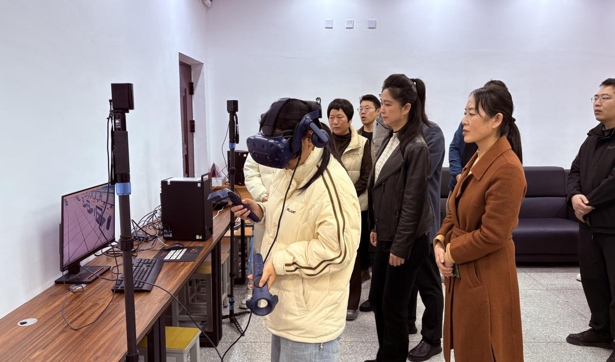 数字媒体技术教研室负责人李红亚老师以“科技赋能廉洁教育,沉浸筑牢思想防线”为主题对信息工程学院VR廉政展馆建设方案进行了汇报。她表示信息工程学院将依托虚拟仿真技术应用专业优势,以“党风为引领、政风为支撑、校风为基础、教风为示范、学风为延伸”的逻辑链条,构建“五馆联动、全域覆盖”的沉浸式廉洁教育阵地,呼应清廉学校建设中“党风清正、政风清明、校风清朗、教风清淳、学风清新”的目标。目前已完成主体框架搭建,后续逐步完成各个场馆搭建工作。汇报结束后,学生代表现场演示自主研创的VR作品,随后,信息工程学院领导班子成员陪同校纪委一行实地调研了学院正在建设的河南省虚拟仿真高技能人才培养基地。