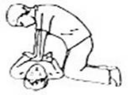 (2)捏住伤员的鼻翼,口对口吹气(不能漏气),每次1~1.5秒,每分钟12~16次;