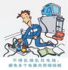 4.不得擅自拆、改电气线路、修理电器设备;不得乱拉、乱接电线,不准使用闸刀开关、木质配电板和花线等。