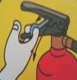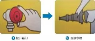 拉开保险插销 握住皮管,用力握下手压柄 将喷嘴对准火苗根部喷射