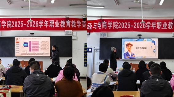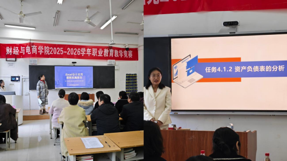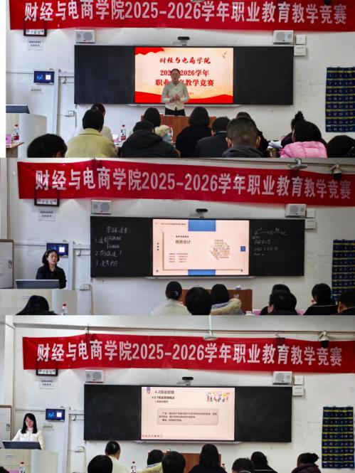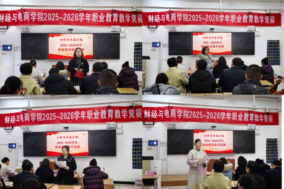 为深入贯彻职业教育改革精神,推动课堂教学创新与教学质量提升,2025年12月3日,财经与电商学院在教学楼B120教室成功举办2025-2026学年职业教育教学竞赛活动。学院全体专兼职教师齐聚一堂,共同观摩了这场教学技艺的交流盛会。