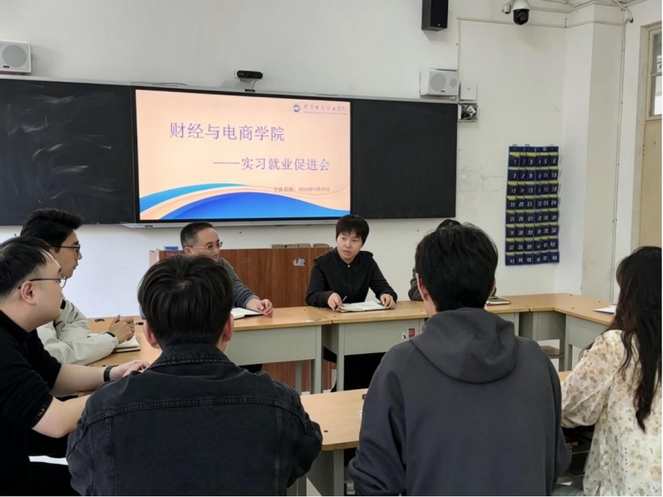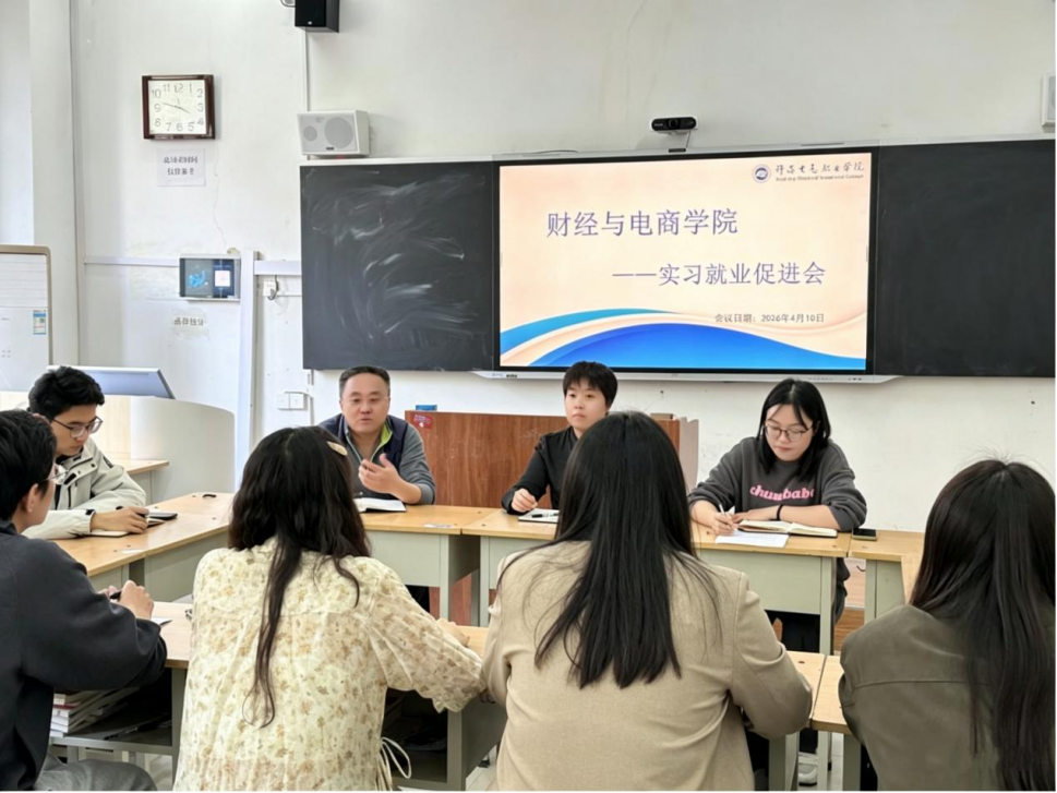 4月10日,财经与电商学院组织召开2026年实习就业工作促进会。学院行政负责人刘会彩、副院长蔡青、就业科科长王全胜及就业专干、带班辅导员、班主任参加会议,会议由副院长蔡青主持。