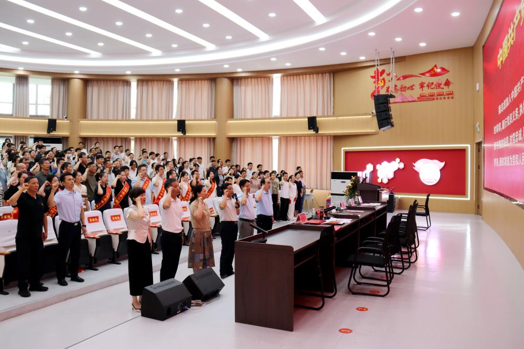 会上,200余名学院党员在彭占亭的带领下重温入党誓词,铿锵有力的誓言响彻整个会场。