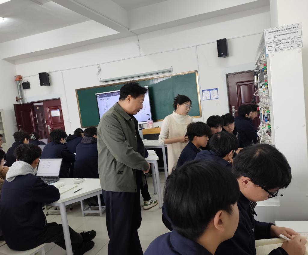 教学质量是学院发展的生命线,而课堂则是教学质量把控的关键阵地。为精准掌握职业教学动态,切实提升课堂教学质量,高远浩走进学生课堂,深入教学一线,以“听课者”和“指导者”的双重身份,深入了解教师的教学方法、教学内容呈现以及学生的课堂学习状态。高远浩全程听取了李晓萍老师的《智能交通灯设计实训》课程,并进行教学检查与指导。李老师围绕“智能交通灯设计”主题,结合案例分析与互动提问,将抽象理论与实践有机融合,生动呈现课程内容,充分展现了扎实的教学潜力与清晰的设计思路,课堂气氛活跃,教学效果好。