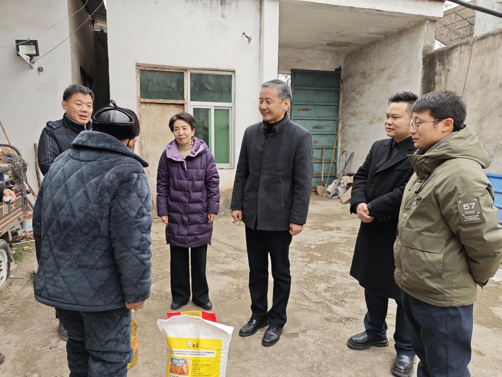 新春将至,岁寒情暖。为持续巩固拓展脱贫攻坚成果,确保学院帮扶村群众度过一个欢乐祥和的新春佳节,2月6日上午,学院副院长朱东煜在党委委员、组织部部长袁明慧及相关部门工作人员陪同下,深入结对帮扶的襄城县姜庄乡汪店村和许邓村,开展“迎双节,送温暖,固成果”走访慰问活动,为驻村工作队和困难群众送去组织的关怀与节日的祝福。