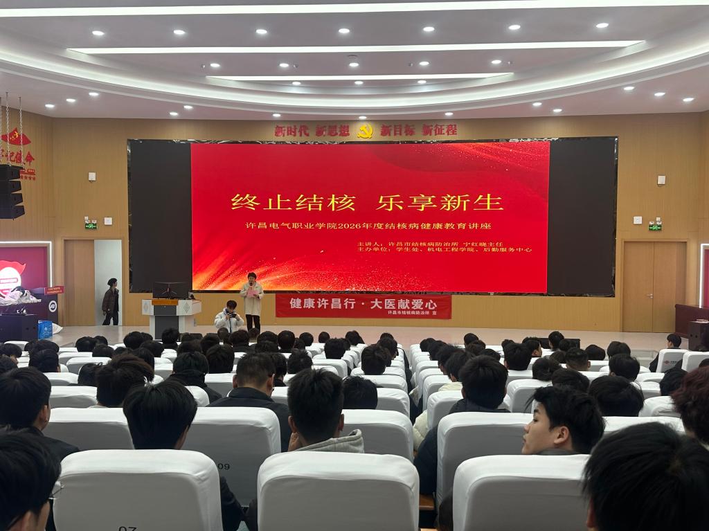 本次活动由学生处、机电工程学院、后勤服务中心联合主办,许昌电气学院党委委员、工会主席张贵军,许昌市结核病防治所副所长宁博等领导参加讲座,许昌市结核病防治所宁红晓主任受邀主讲,数百名师生代表齐聚一堂,共学防治知识,共筑健康校园。