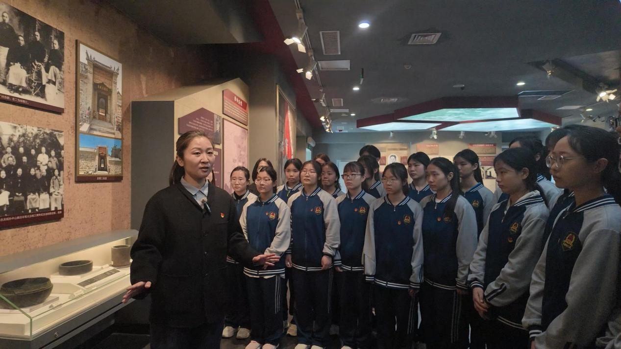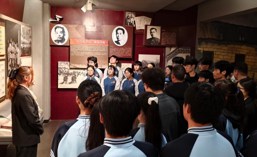 许昌市第三高级中学教师牛丽鸽在革命烈士纪念馆内讲思政微课