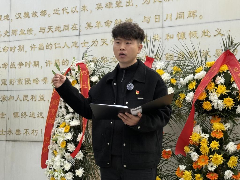3 月 26 日上午,许昌市大中小学思政课一体化(许昌电气职业学院片区)“缅怀革命先烈・传承红色基因”清明节祭扫暨思政实践研学活动在许昌市烈士陵园顺利举办。中共许昌市委宣传部四级调研员李浩,许昌市教育局总督学马超出席活动,许昌电气职业学院马克思主义学院党政负责人宋贵斌、肖莹莹,许昌市第三高级中学校长张琳、副校长王洋,许昌市特殊教育学校党支部书记、校长许军涛,党支部专职副书记郑保营及三所学校师生代表、许昌市特殊教育学校陪读家长参加本次活动。