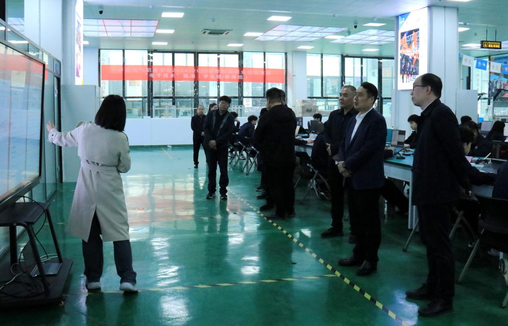 本次调研以实地走访、现场交流的形式开展,冉高垒一行先后深入电子技术、全媒体运营两大重点赛项备赛训练场地,认真听取教练团队关于训练计划制定、赛项要点钻研、针对性辅导等工作汇报,逐一查看实训设备运行、训练场地保障、日常训练开展等情况,面对面与参赛选手、教练团队深入沟通,细致了解备赛全流程工作。