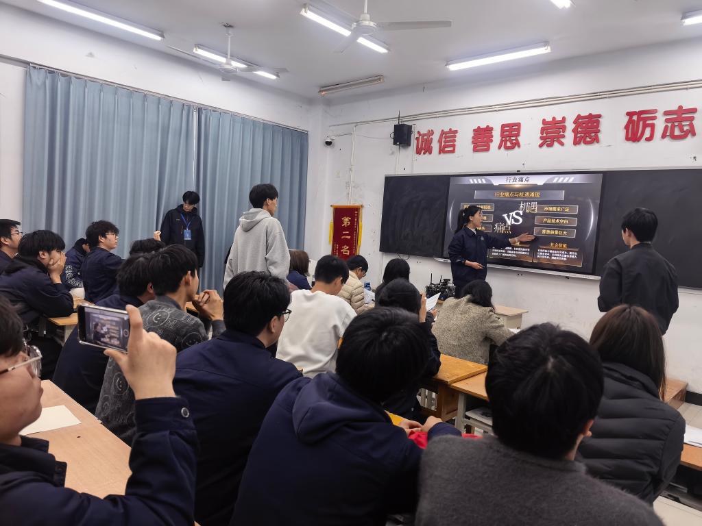 答辩现场,参赛团队逻辑清晰、应答沉着,评委们从项目创新性、可行性等方面精准点评、悉心指导,既肯定亮点、也点拨不足,以专业视角为项目打磨指明方向,充分展现以赛促学、以赛促创的良好氛围。