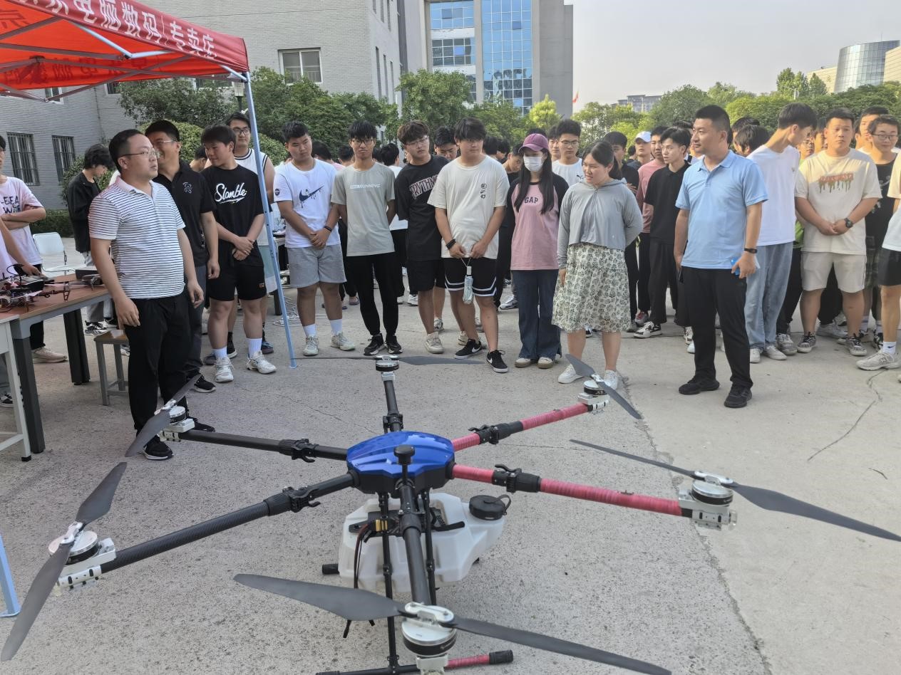 其中,无人机表演区由徐爽、卢婷、郭辉老师负责,由无人机专业学生进行实操表演,为大家展示无人机航拍技术,展现科技带来的便利。无人机操控,是一项新兴技术,属于高新前沿科技产业,无人机在其他应用领域不断拓宽,无人机从业人员的选择将会逐年增多。现场活跃的氛围聚集了大量的学生参观,电气工程系党总支副书记杜瑞涛为学生们讲解无人机的原理与用法,并邀请学生体验,激发学生学习兴趣,致力于让学生脑会和手会。