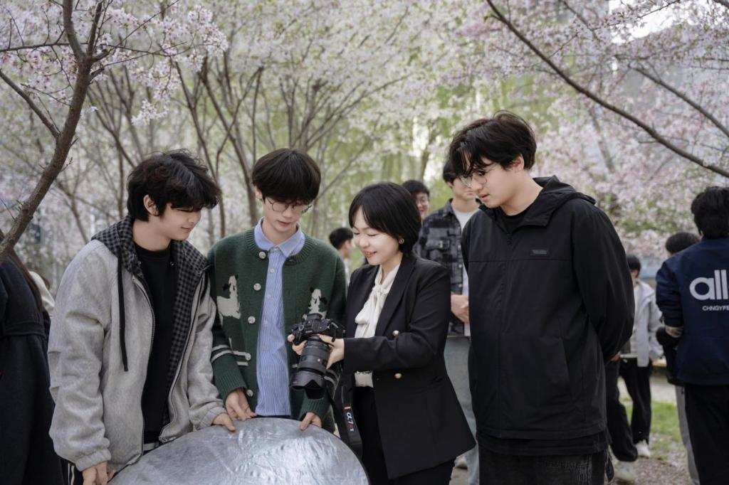 本次活动的一大创新亮点在于:信息工程学院数字媒体技术应用专业学生不仅担任人像摄影模特,也是课堂的正式学员,更是摄影师。学生们在镜头前配合完成“樱花·唯美人像”“海棠·微距细节”“玉兰·极简意境”等主题拍摄的同时,也在两位导师的指导下系统学习手机摄影技能,更在实景采风环节实现“被拍者亦为拍摄者”的角色转变,为参训教师、为同学、为校园春景按下快门。