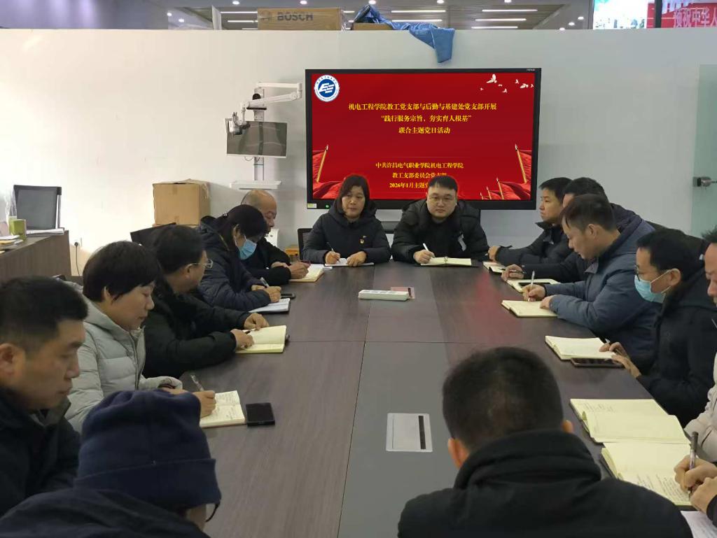 为打破部门壁垒、凝聚协作共识,构建“党建引领、资源共享、服务联动、互促共进”的党建工作新格局,切实将基层党组织的政治优势、组织优势转化为服务师生、助推学校发展的实际效能,2026年1月22日,机电工程学院教工党支部与后勤与基建处党支部联合举办“践行服务宗旨,夯实育人根基”主题党日活动。活动聚焦“服务”核心,紧扣“育人”根本,通过理论学习、实践交流、实地调研等多元形式,强化党员服务意识,提升协同工作能力,共同筑牢服务学校发展、助力人才培养的坚强战斗堡垒。