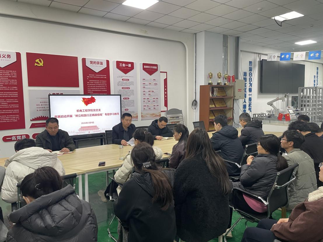 为深入学习贯彻习近平新时代中国特色社会主义思想,引导全体党员干部牢固树立和践行正确政绩观,切实把思想和行动统一到党中央决策部署及学校党委工作要求上来,近日,机电工程学院党总支召开专题会议,部署启动“树立和践行正确政绩观”专题学习教育工作,党总支负责人冯振华主持会议,支部全体党员参加专题学习教育启动会。