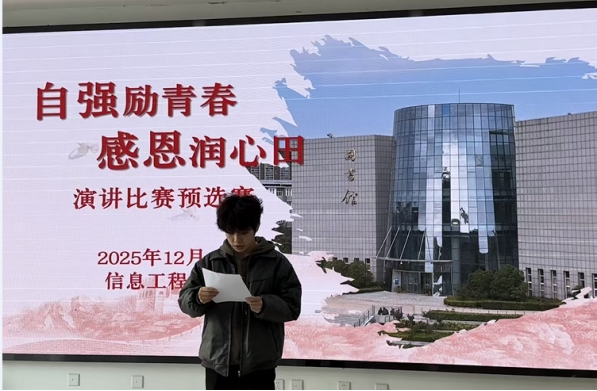 为深入学习贯彻党的二十大精神,弘扬伟大爱国精神,传递国家资助政策温暖,展现资助育人成效,12月4日,信息工程学院成功举办“自强励青春,感恩润心田”主题演讲比赛预选赛。本次赛事既是校级决赛的重要选拔环节,也为全院学子搭建了抒发感恩之情、践行报国之志的优质平台。