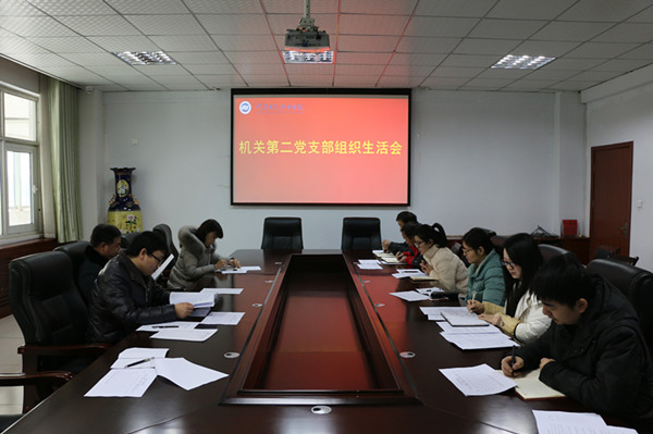 按照学院统一部署,1月25日上午9时,学院机关党总支第二党支部年度考核暨专题组织生活会在行政楼第二会议室召开。会议以“认真学习领会习近平新时代中国特色社会主义思想,坚定维护以习近平同志为核心的党中央权威和集中统一领导,全面贯彻落实党的十九大各项决策部署”为主题,联系工作实际,进行自我检查、党性分析,开展批评和自我批评,开展党员民主评议并进行年终考核。第二支部所属院办、计划财务处全体成员参会,院长杨德岭同志以普通党员身份参加组织生活会,会议由支部书记李松涛主持。