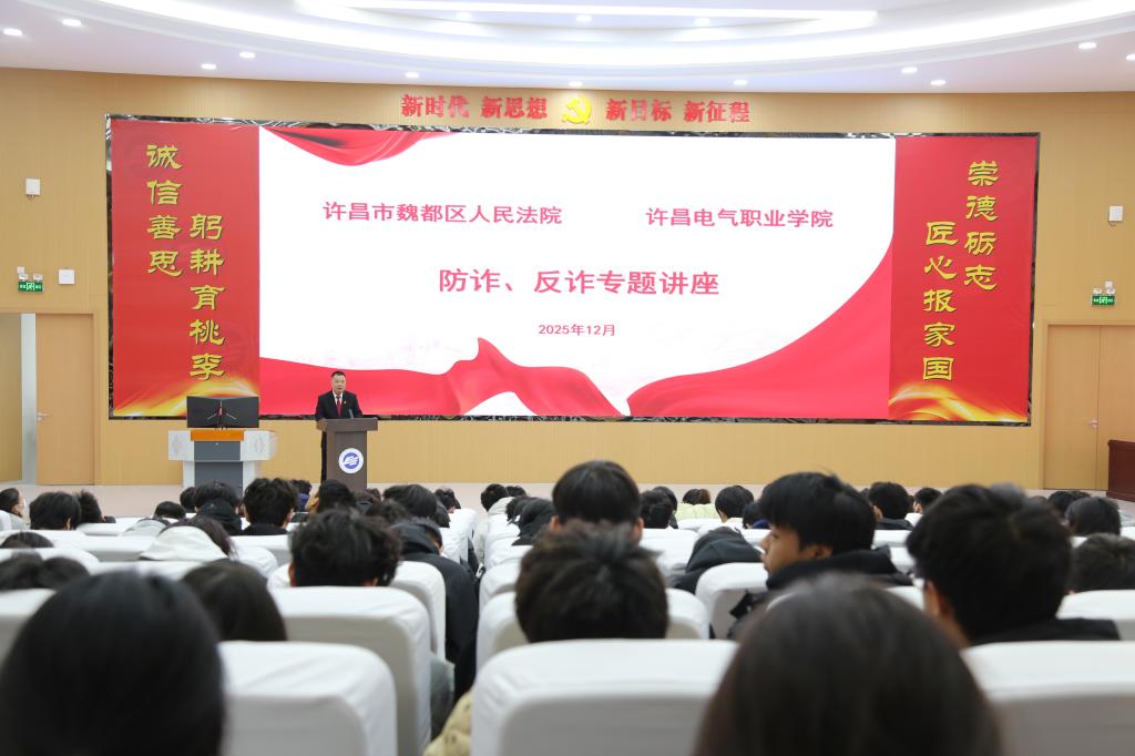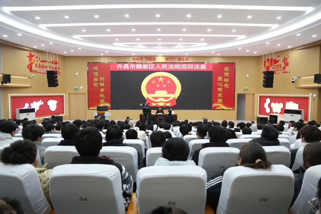 为深化学校法治建设,筑牢师生防诈反诈思想防线,切实提升学生的法治素养和风险防范能力。12月12日,我院联合许昌市魏都区人民法院成功举办“巡回法庭进校园暨防诈反诈专题讲座”活动。学院250余名师生走进“沉浸式”庭审现场,零距离感受法律威严,接受生动直观的法治教育。