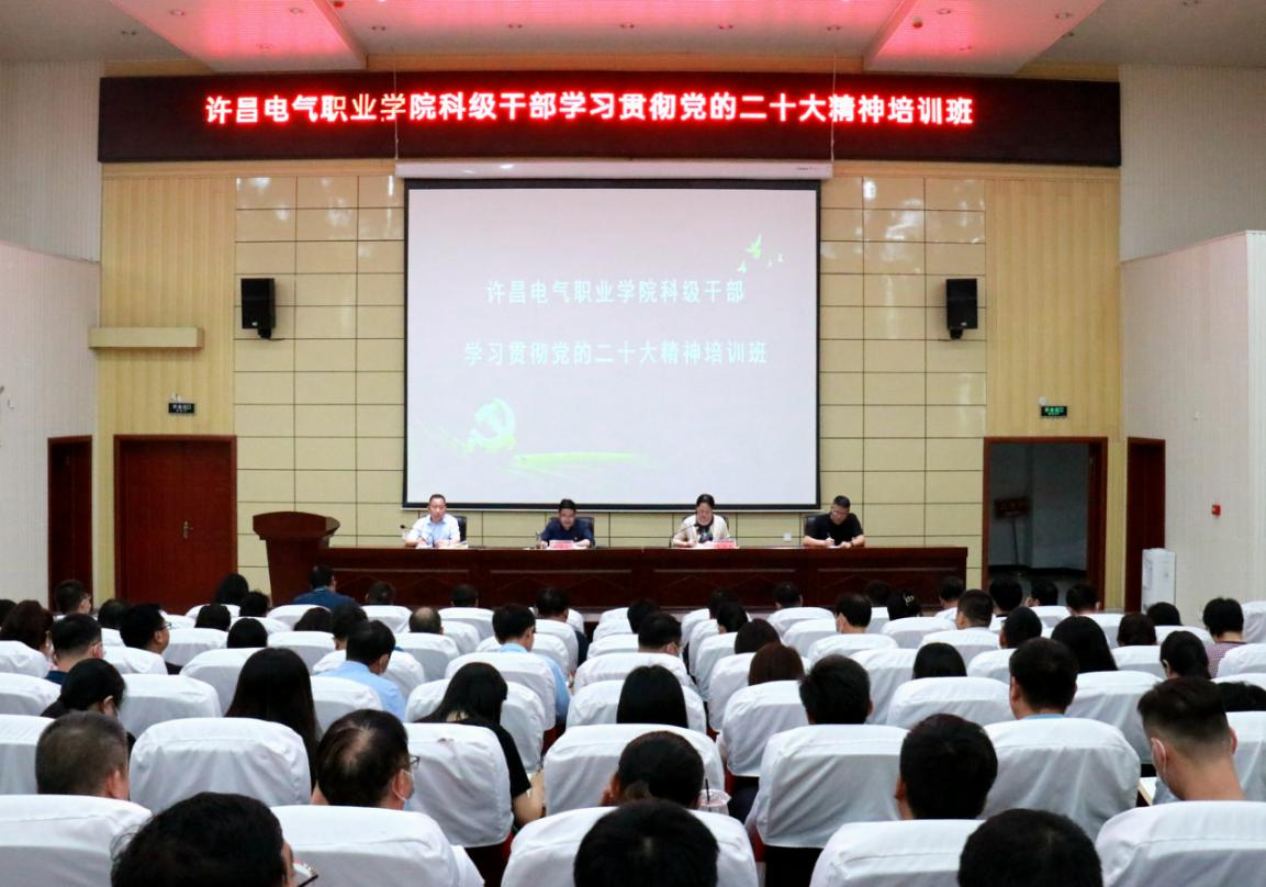 为深入学习贯彻党的二十大精神,按照市委组织部通知要求,5月16日下午,许昌电气职业学院科级干部学习贯彻党的二十大精神集中培训班在学院二期报告厅开班。学院党委书记彭占亭出席开班式并作动员讲话,党委副书记张明慧主持开班式。党委委员、组织部部长张杰伟,党委办公室主任杨继奎出席会议。学院全体科级干部和专职思政教师共计130余人参加培训。